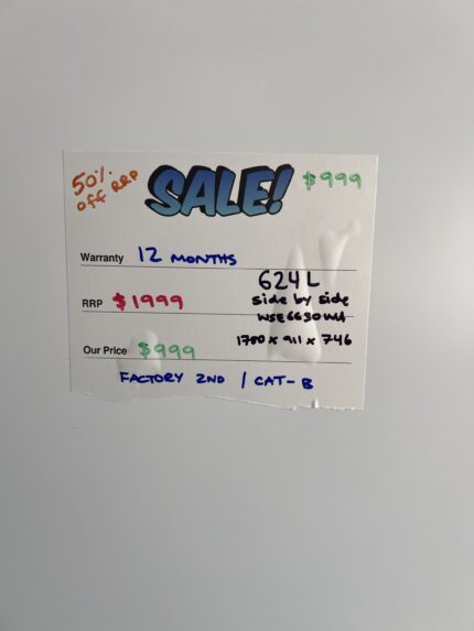FACTORY SECONDS WESTINGHOUSE 624 L SIDE BY SIDE FRIDGE FOE $999