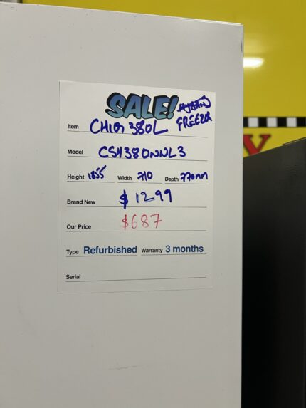REFURBISHED CHIQ 380 L UPRIGHT FREEZER FOR $ 687 Brand: CHIQ Model: CSH380NWL3 STARS : 5 Dimensions: 1855 Height x
