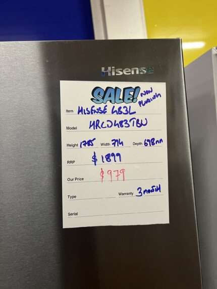 REFURBISHED HISENSE 482 L BOTTOM MOUNT REFRIGERATOR WITH WATER DISPENSER FOR $ 629 Brand: HISENSE Model: HRBM482SW STARS : 4.5