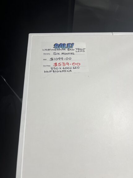 FACTORY SECONDS WESTINGHOUSE 8KG FRONT LOADER WASHING MACHINE FOR $539 Brand: WESTINGHOUSE Model: WWF8024M5WA VOLUME 8 KG Dimensions: 850 Height
