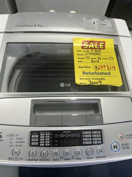 REFURBISHED LG 5.5 Kg top mount washing machine FOR $249 Brand: LG Model: WTH550 Dimensions: 95 Height x 54 Width