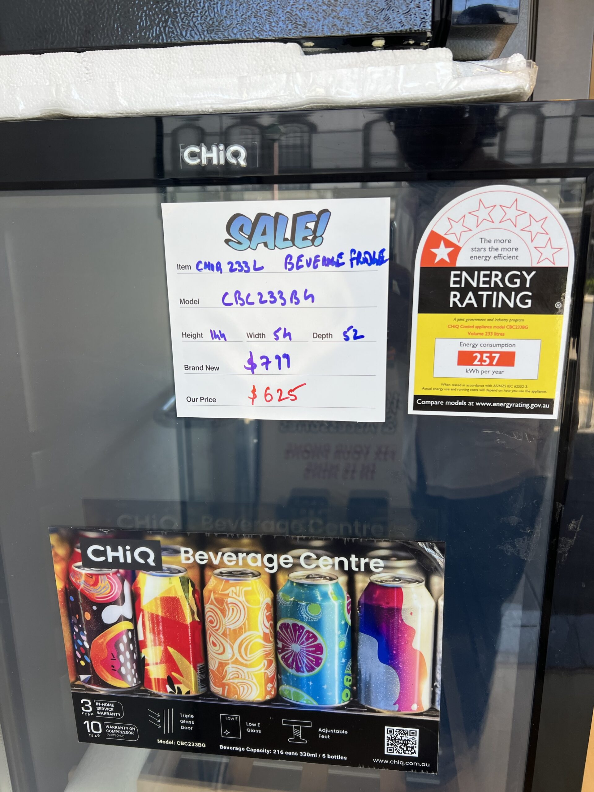 Home Refrigerator BRAND NEW FACTORY SECONDS CHIQ 233 L BeVerage Glass for $625