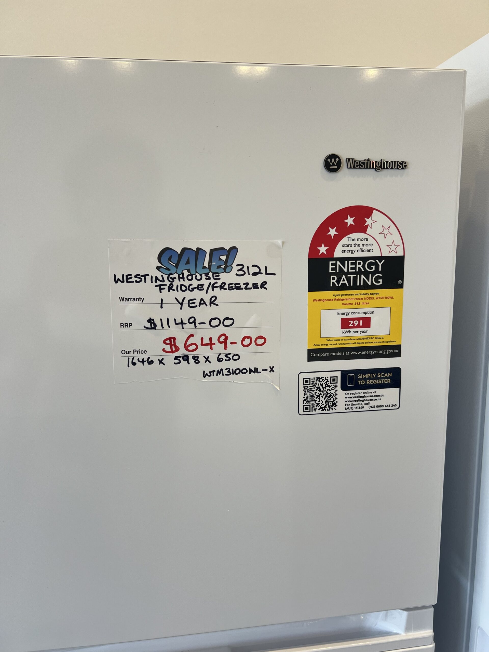 BRAND NEW FACTORY SECONDS Westinghouse 312 L Bottom mount fridge for $649