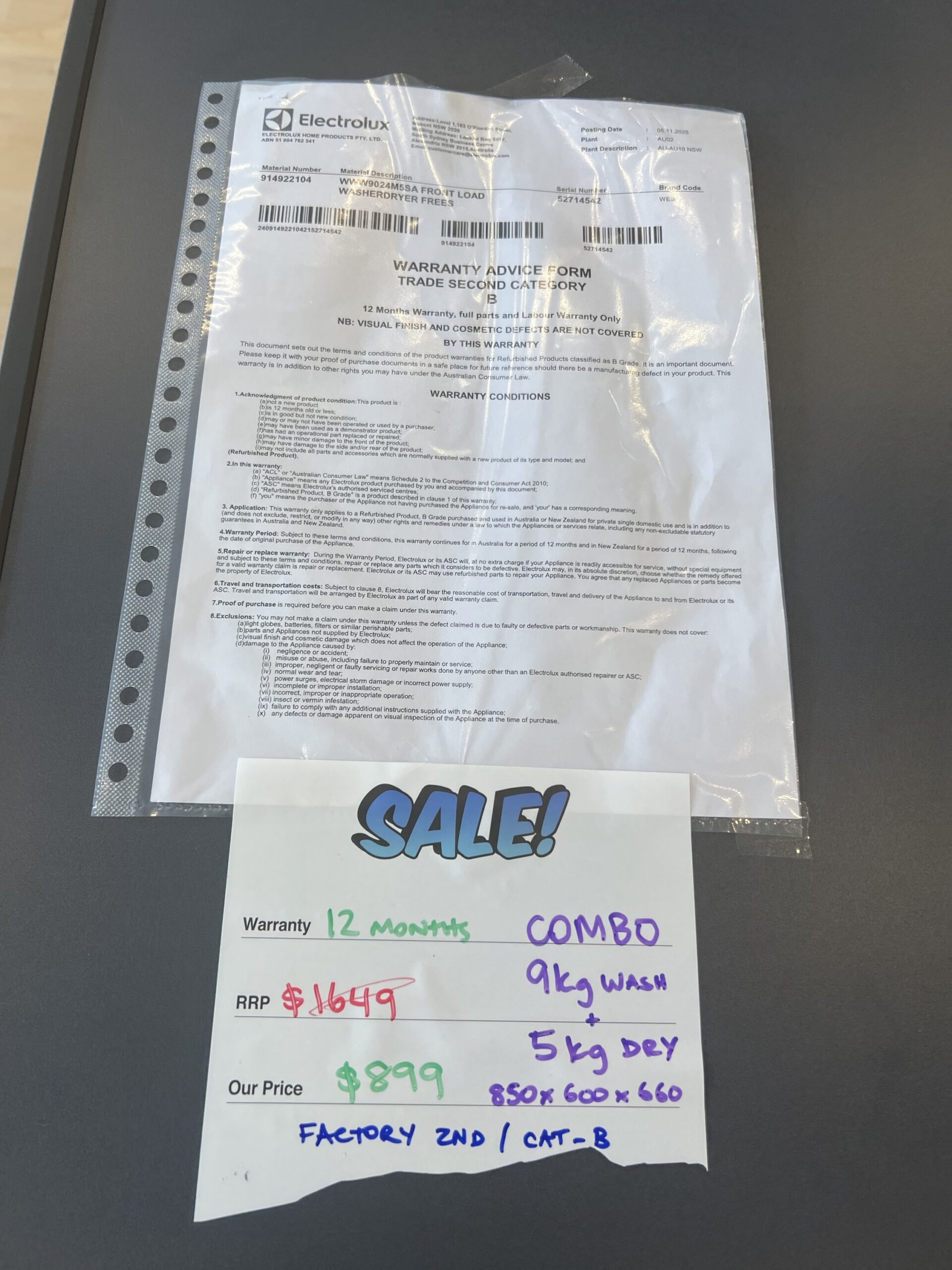 BRAND NEW FACTORY SECONDS WESTINGHOUSE COMBO 9KG WASHER + 5KG DRYER for $899