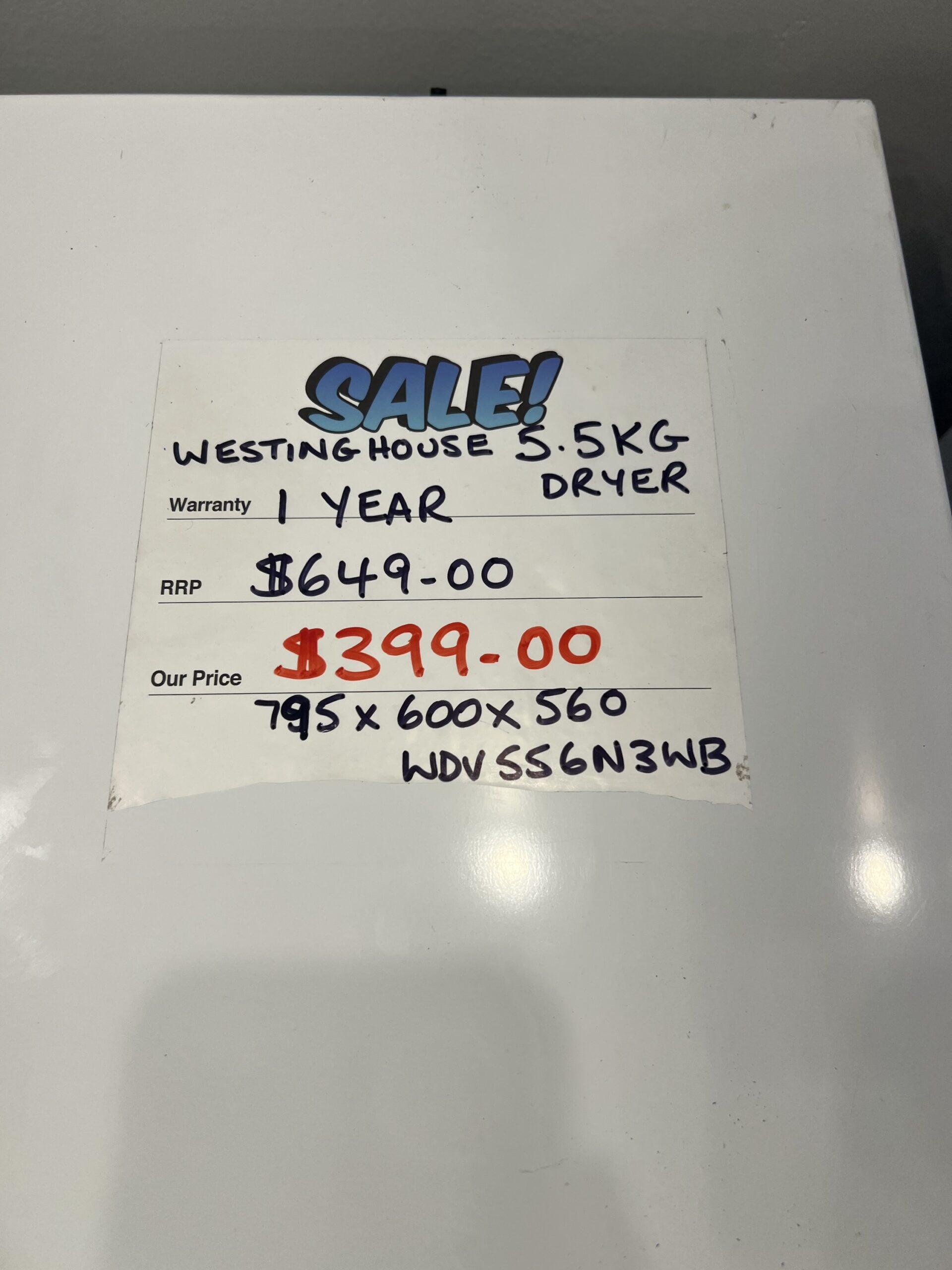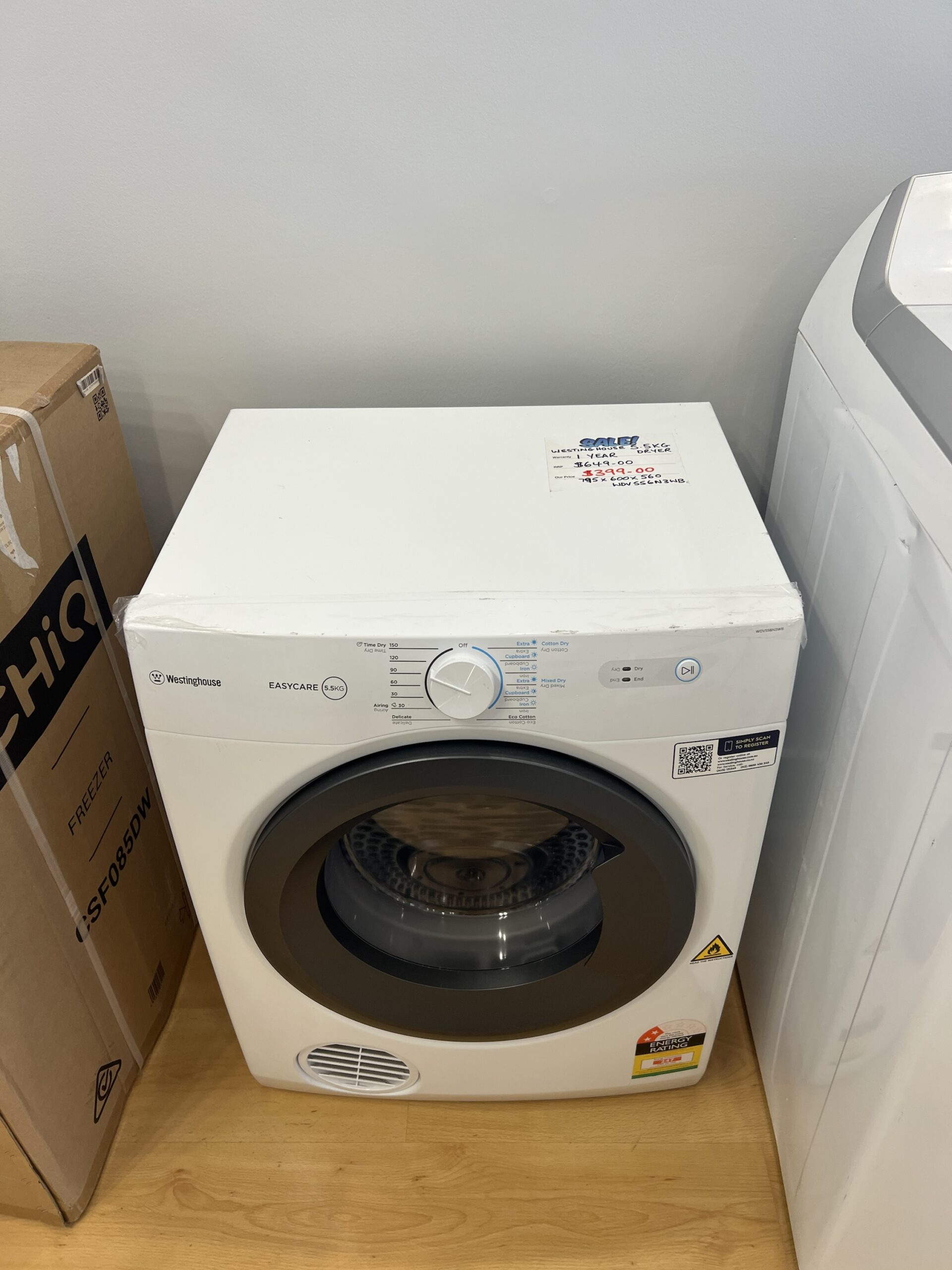 BRAND NEW FACTORY SECONDS WESTINGHOUSE Dryer 5.5 kg for $399