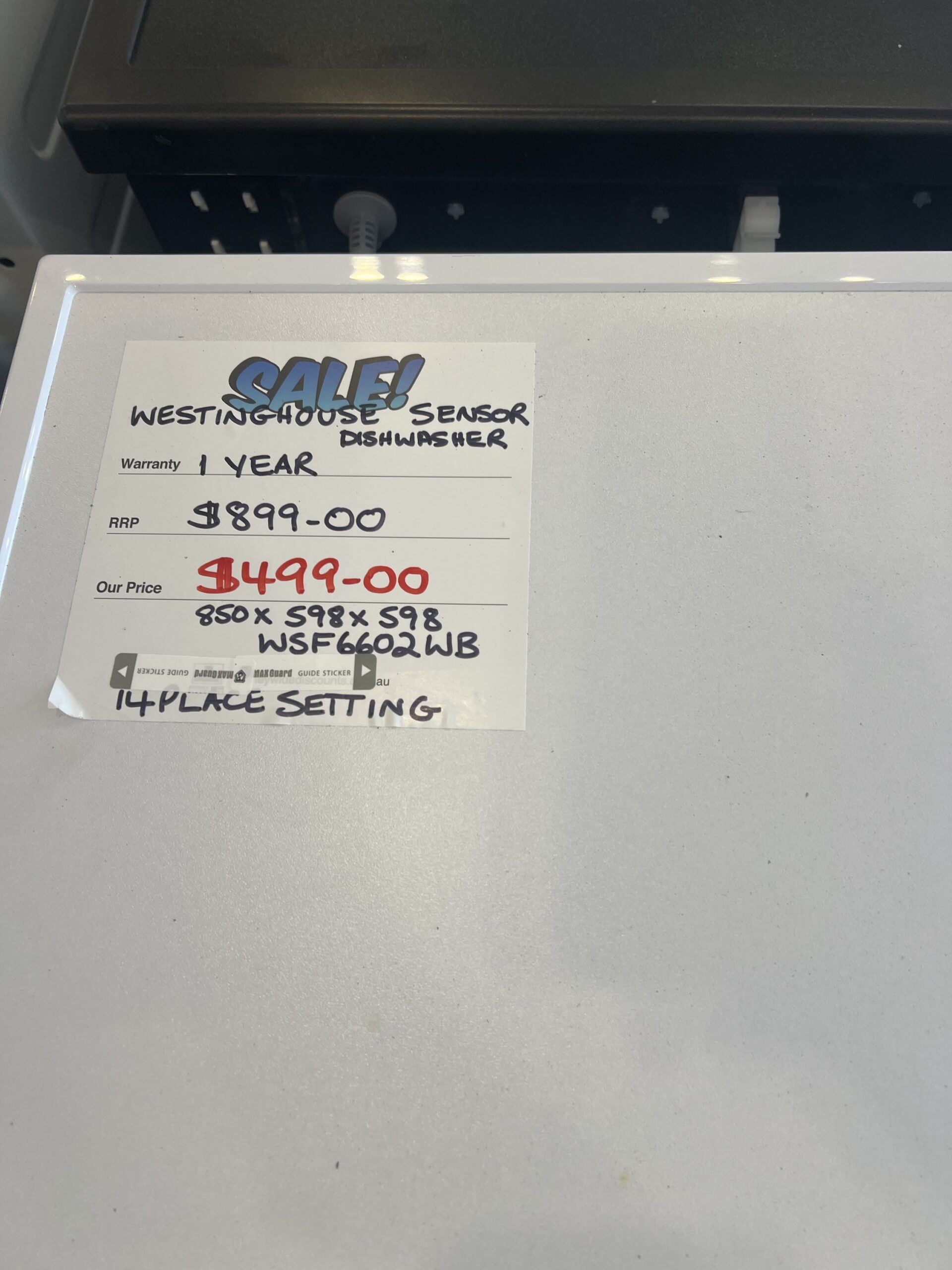 BRAND NEW FACTORY SECONDS WESTINGHOUSE SENSOR DISHWASHER 14 PLACE SETTING for $499