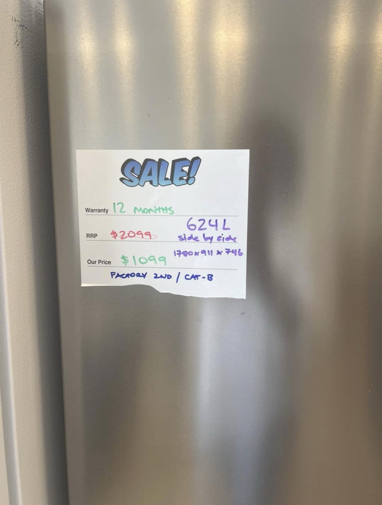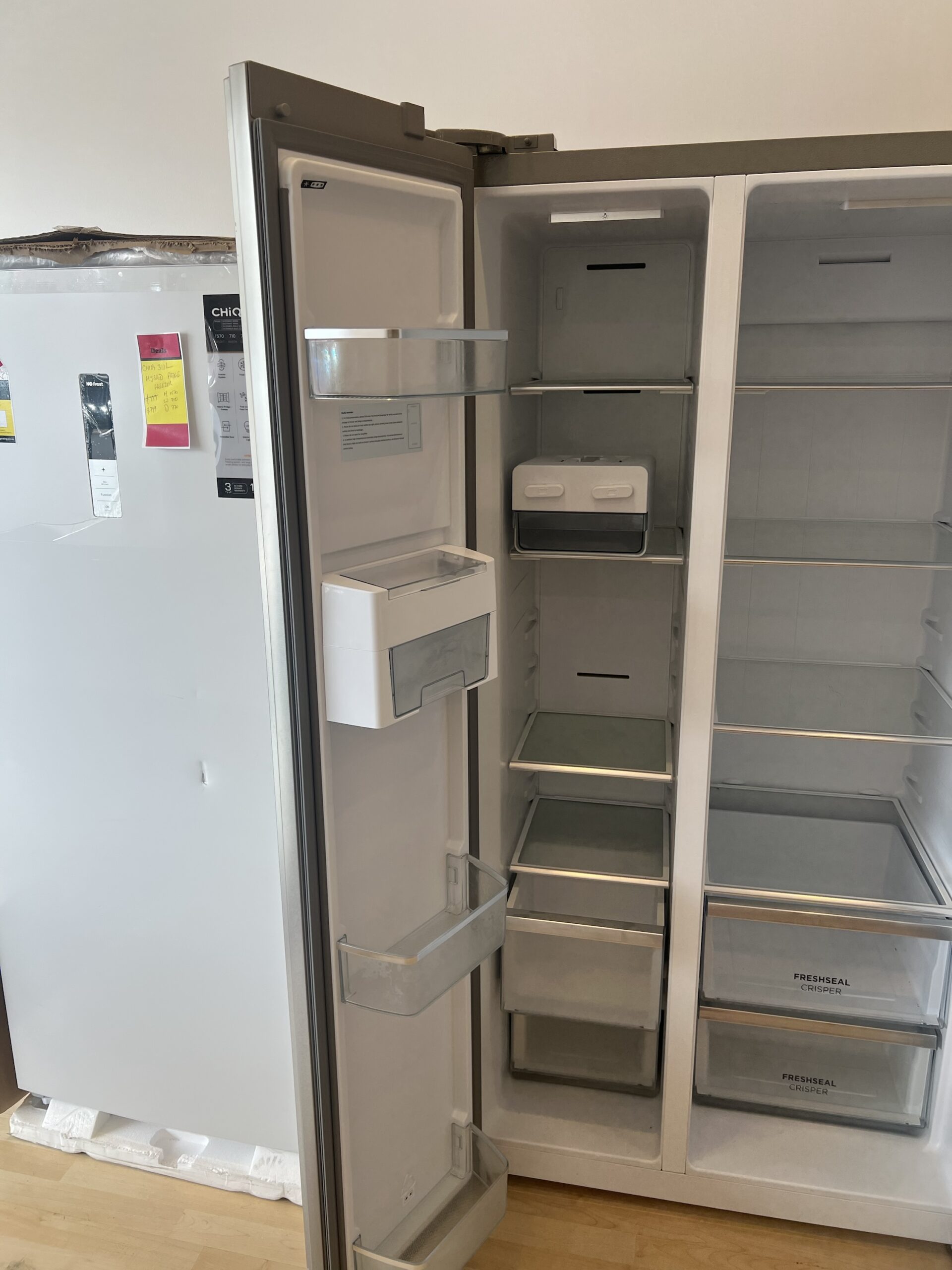 BRAND NEW FACTORY SECONDS WESTINGHOUSE SIDE BY SIDE FRIDGE for $1099