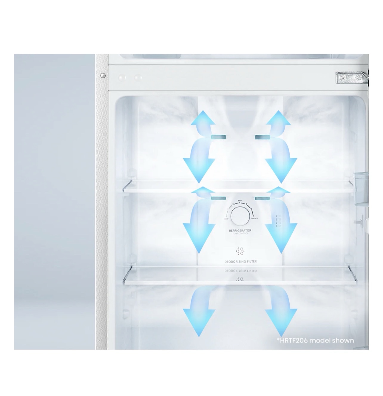 Multi Air Flow | The system ensures chilled air reaches each shelf quickly and uniformly to ensure the food will stay fresher for longer.