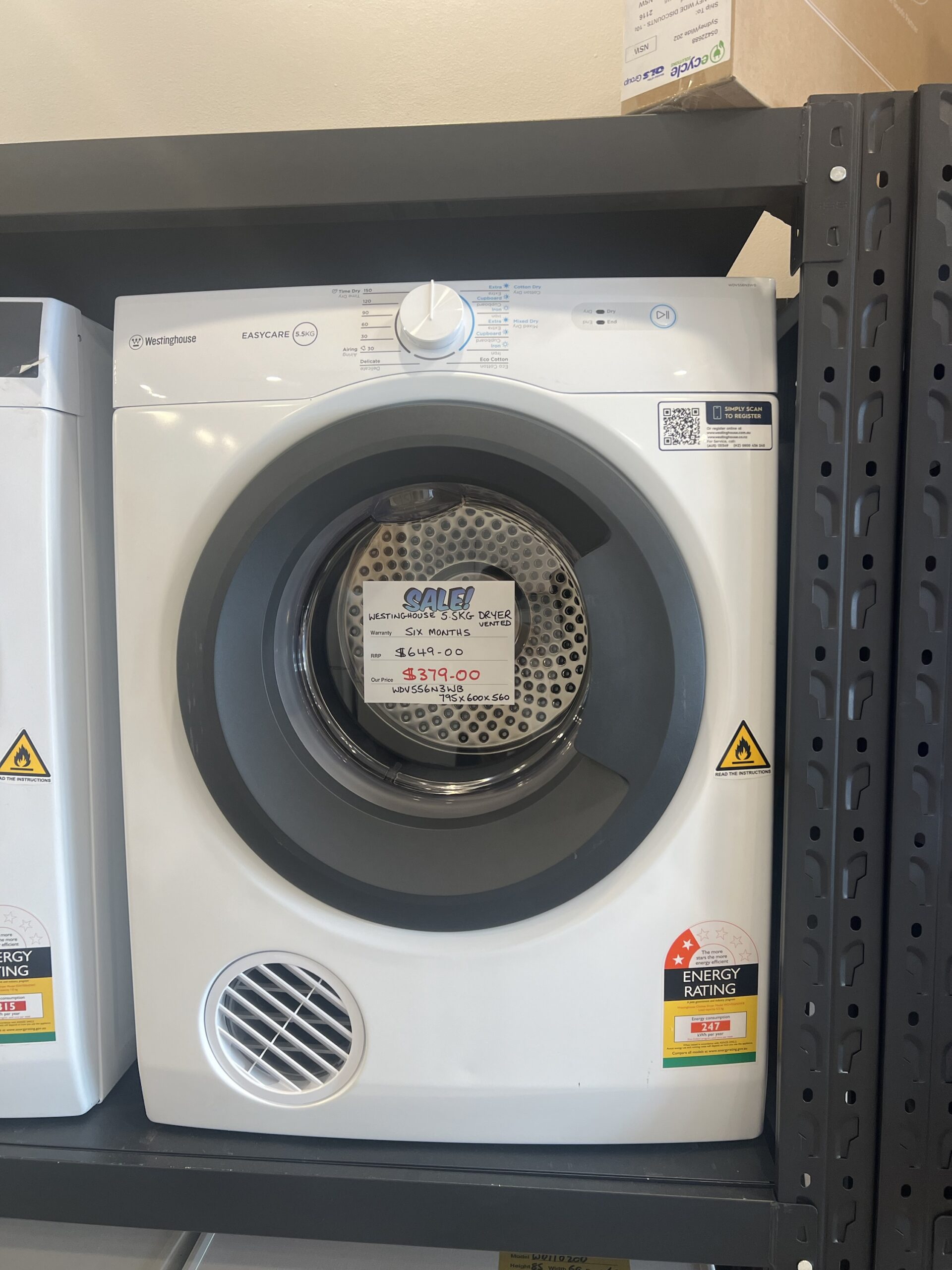 FACTORY SECONDS WESTINGHOUSE 6.5 DRYER VENTED FOR $429
