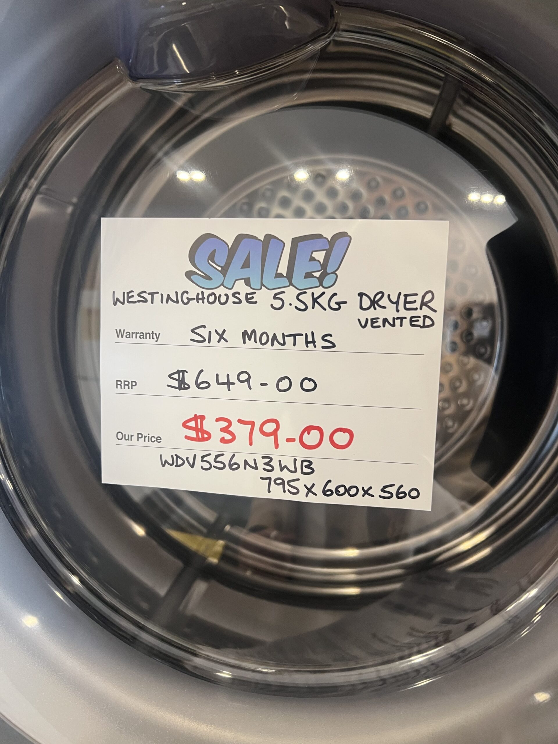 FACTORY SECONDS WESTINGHOUSE 6.5 DRYER VENTED FOR $429 $749.00 Original price was: $749.00.$429.00Current price is: $429.00.