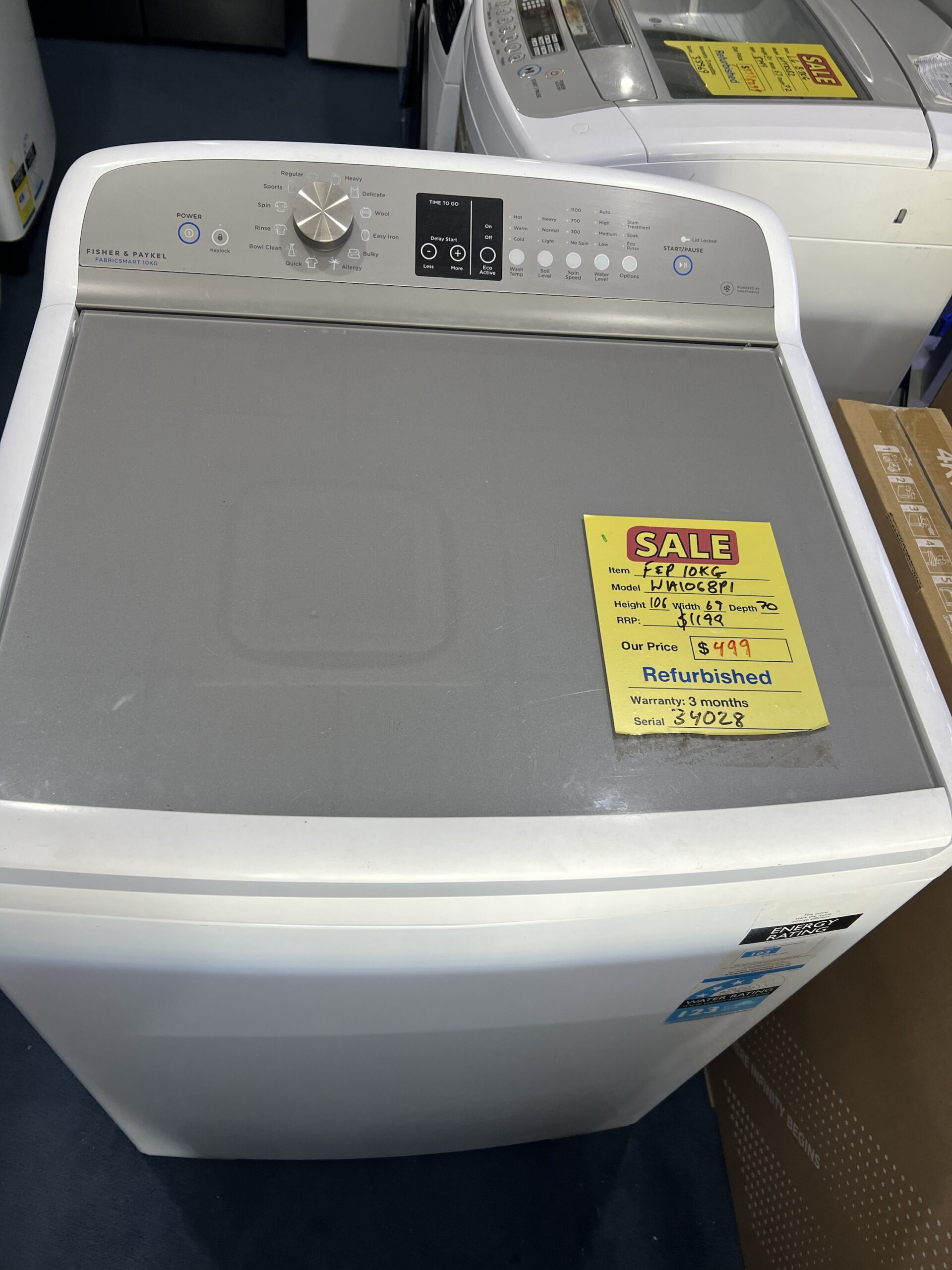 REFURBISHED FISHER AND PAYKEL 10 Kg KG TOP LOADER WASHING MACHINE FOR $499
