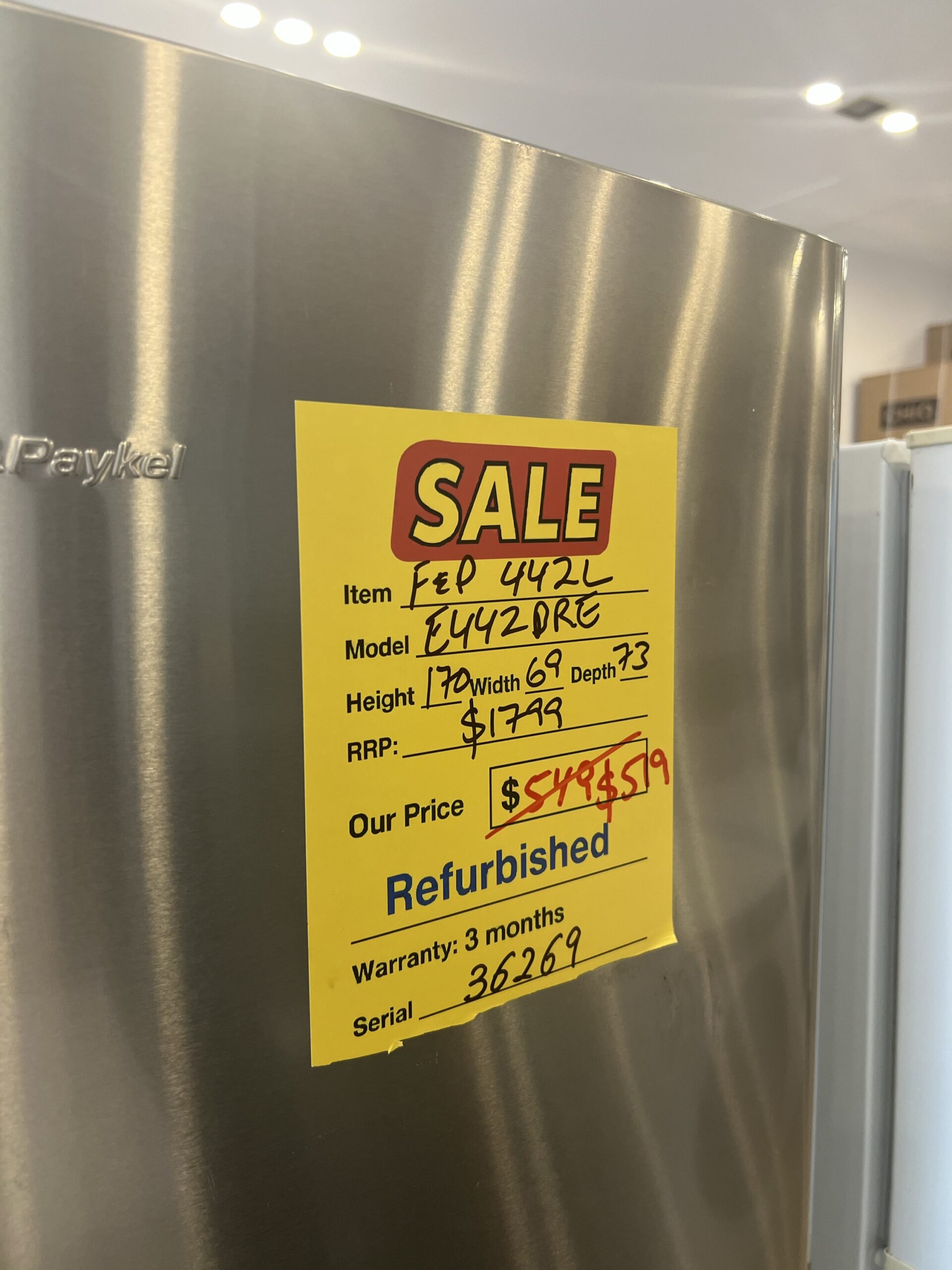 REFURBISHED FISHER AND PAYKEL FREEZER 442 L FOR $579