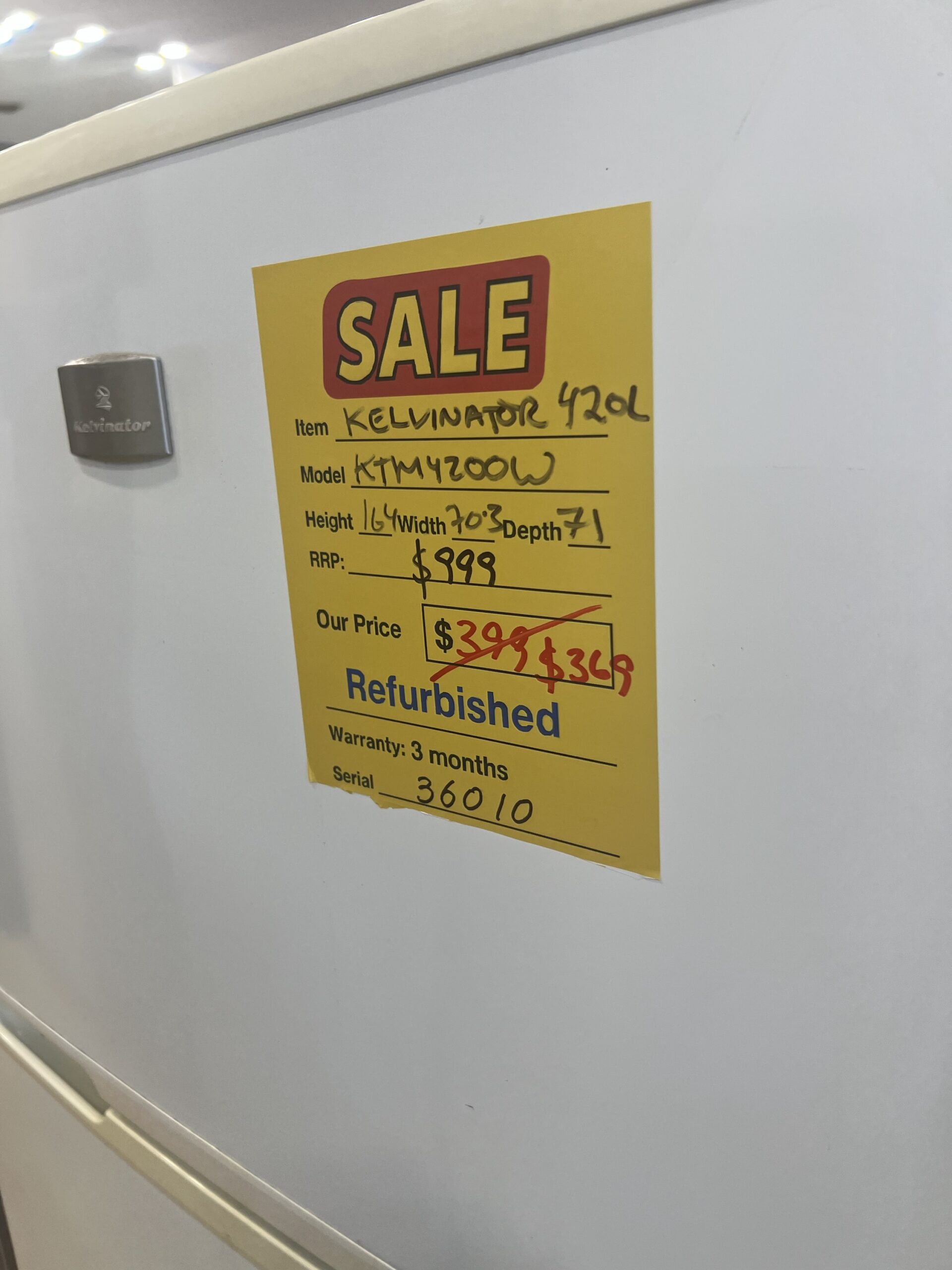 REFURBISHED KELVINATOR 420 L TOP MOUNT FRIDGE FOR $369
