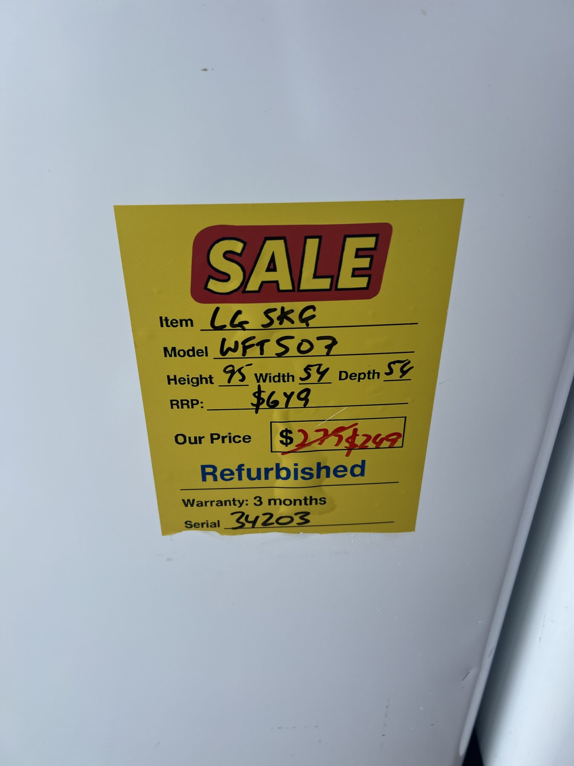 REFURBISHED LG 5 KG TOP LOADER WASHING MACHINE FOR $249