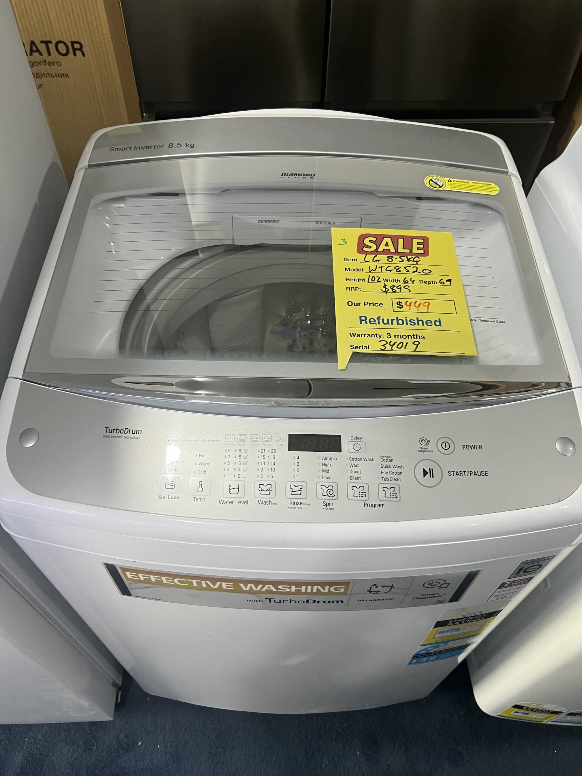 REFURBISHED LG 8.5 Kg KG TOP LOADER WASHING MACHINE FOR $449