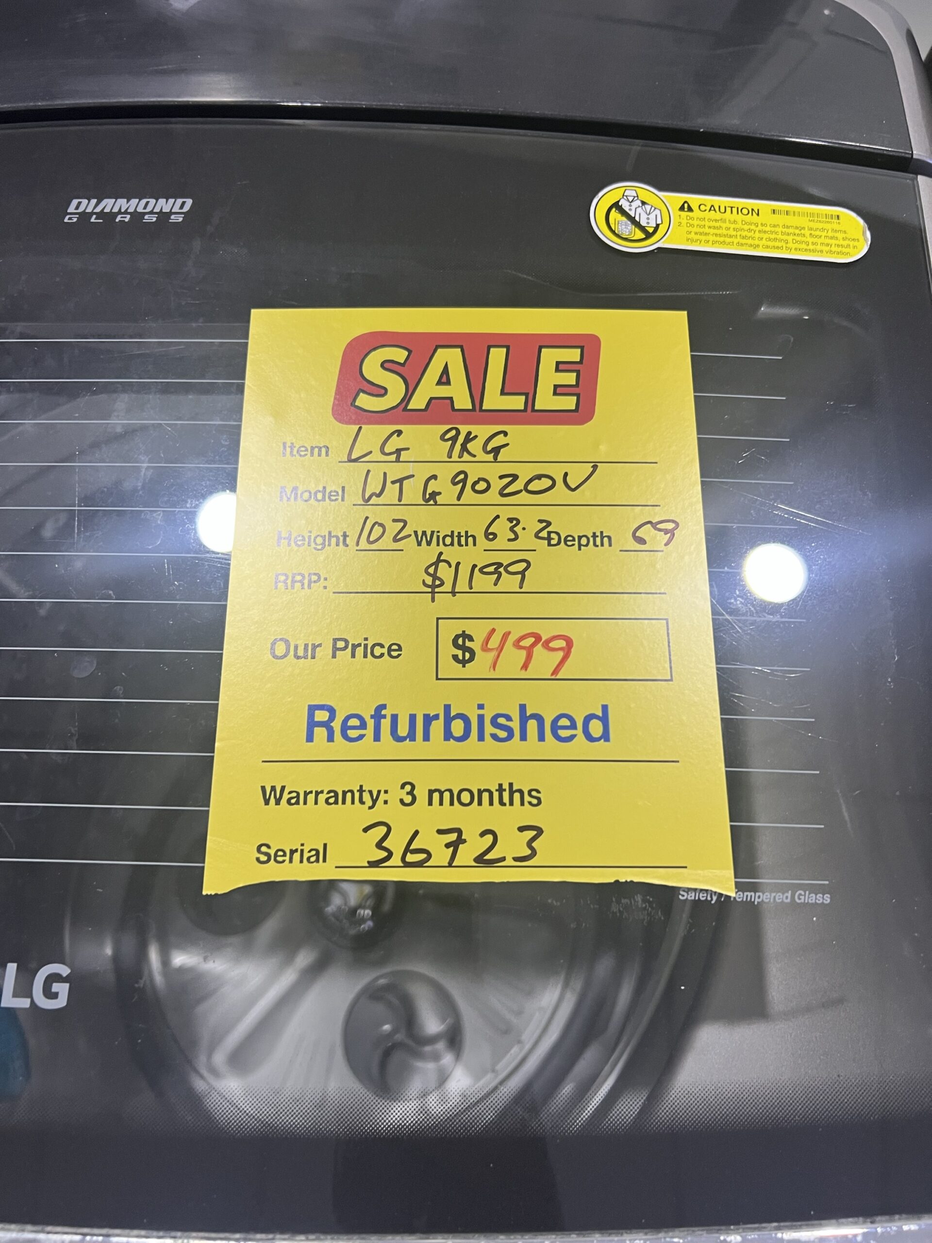 REFURBISHED LG 9KG TOP LOADER WASHING MACHINE FOR $499