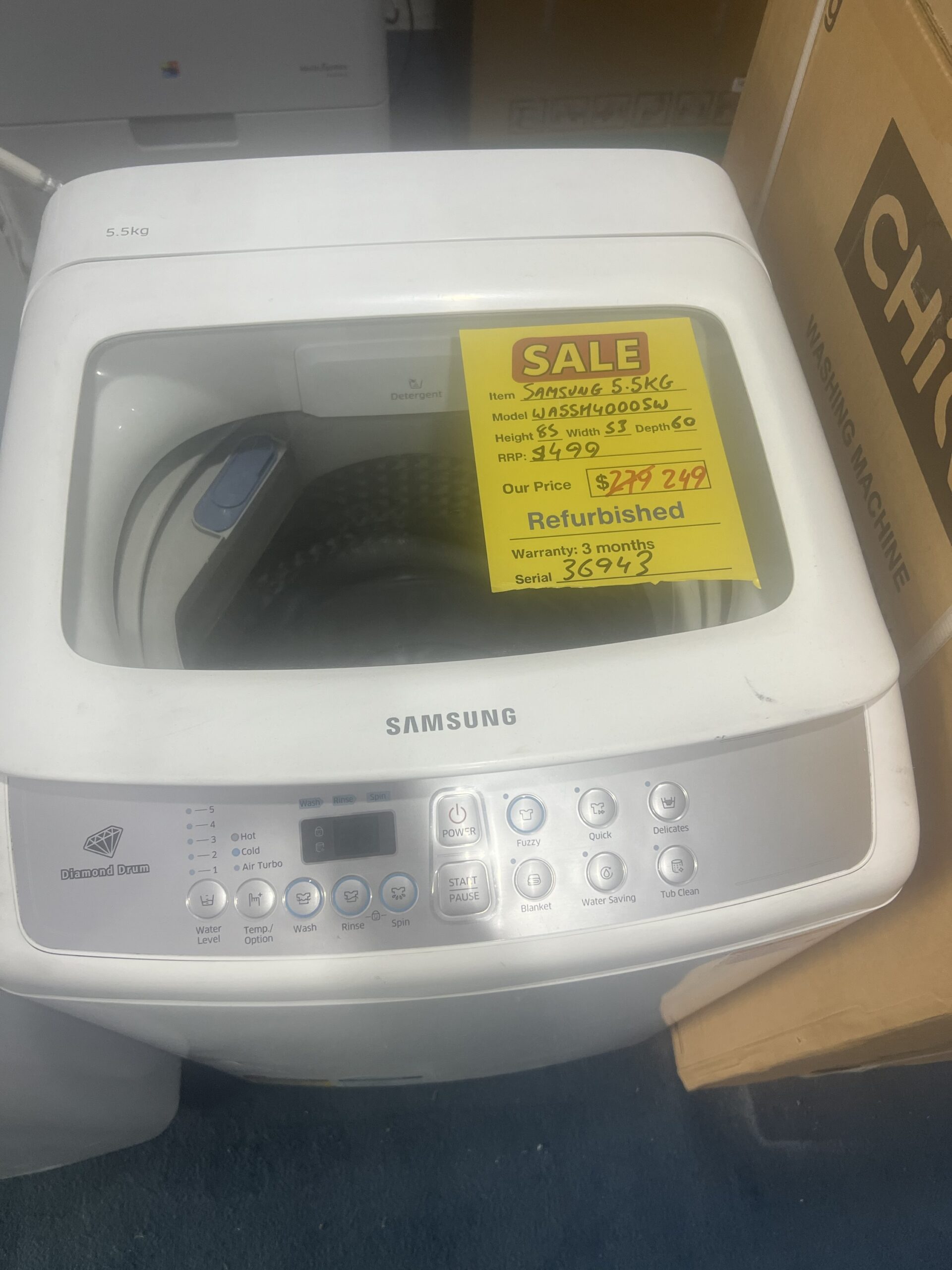 REFURBISHED SAMSUNG 5.5 KG TOP loader washing machine FOR $249