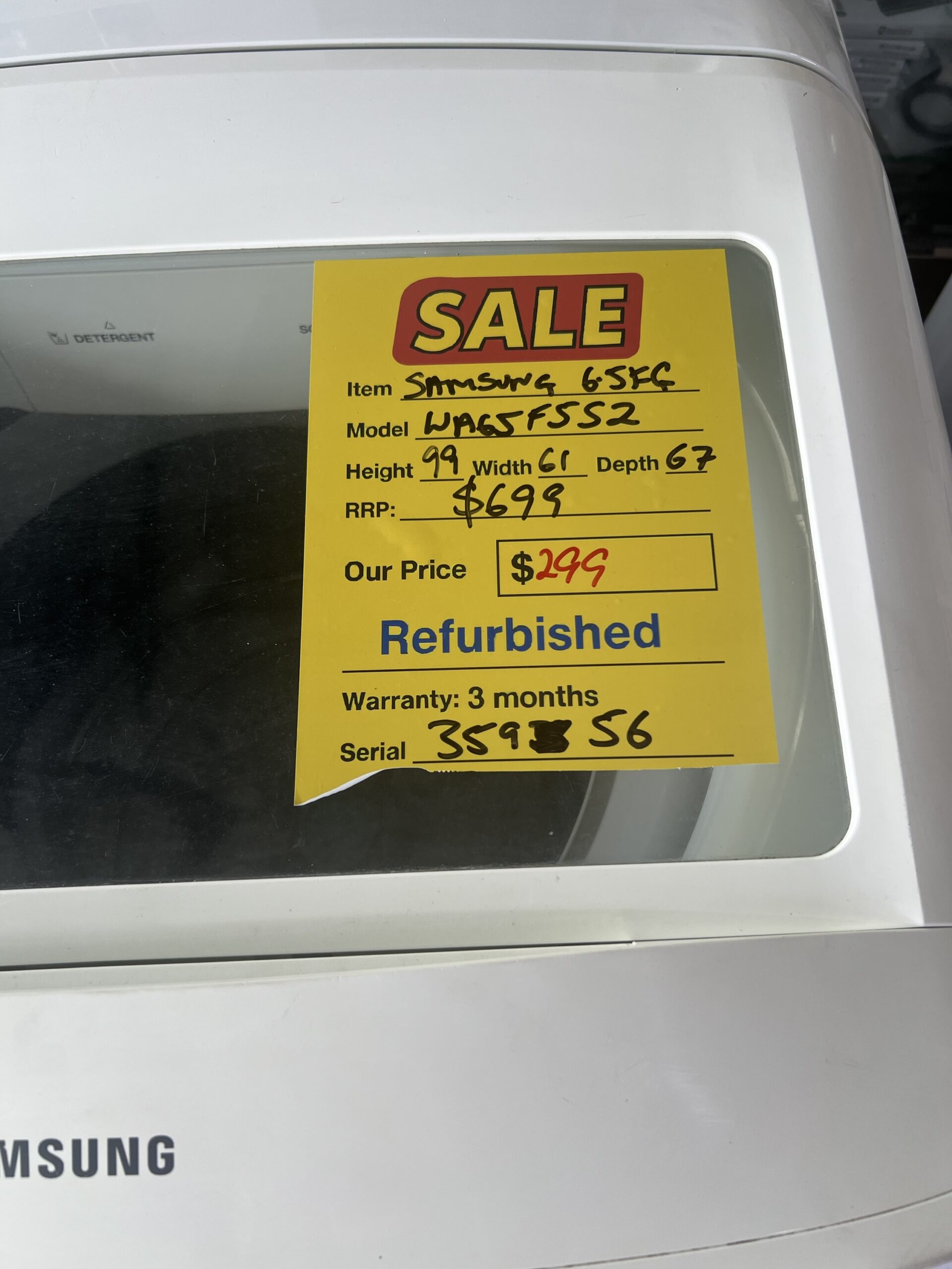 REFURBISHED SAMSUNG 6.5 KG TOP LOADER WASHING MACHINE FOR $339
