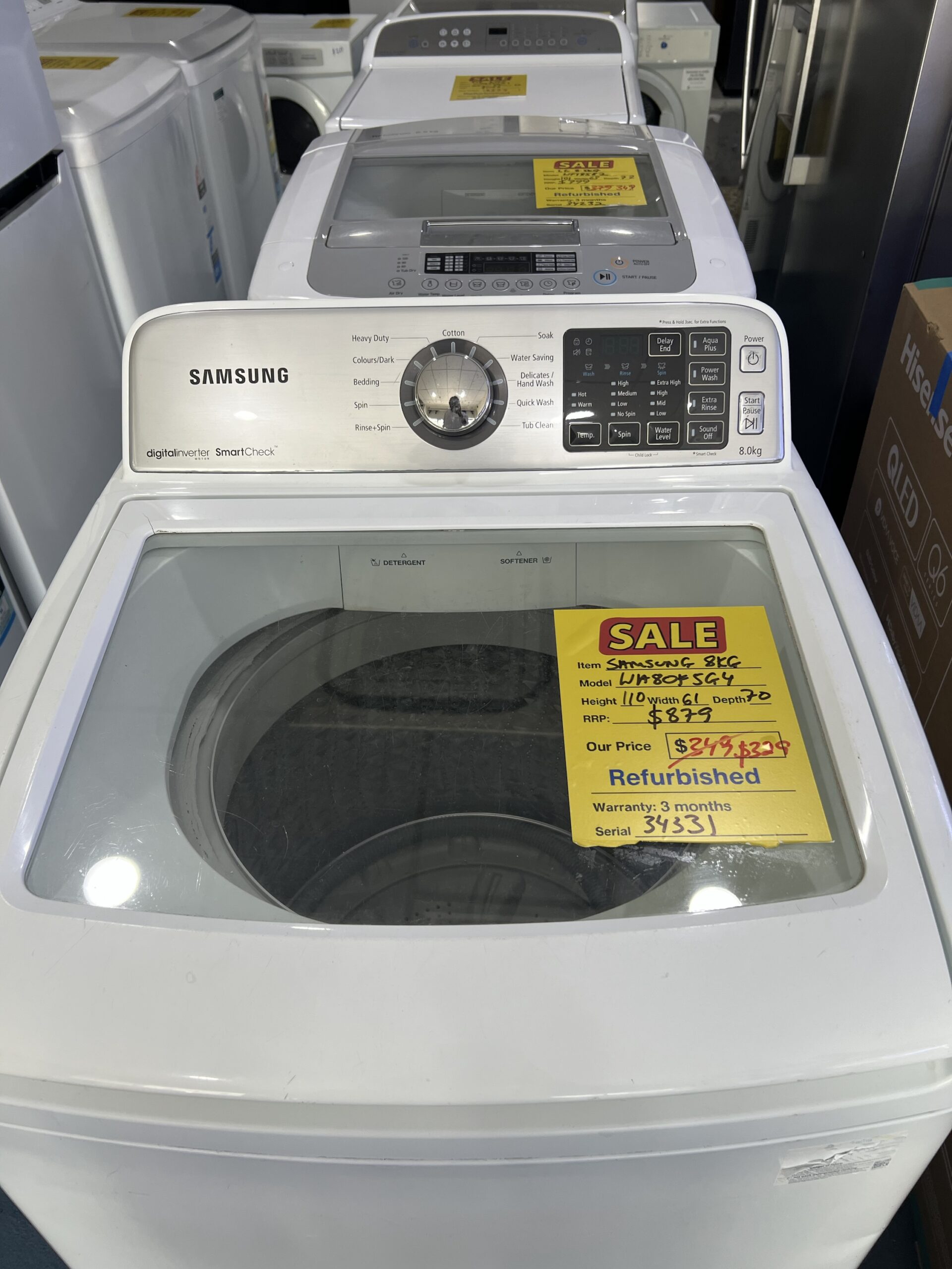 REFURBISHED Samsung 8Kg TOP LOADER WASHING MACHINE FOR $329