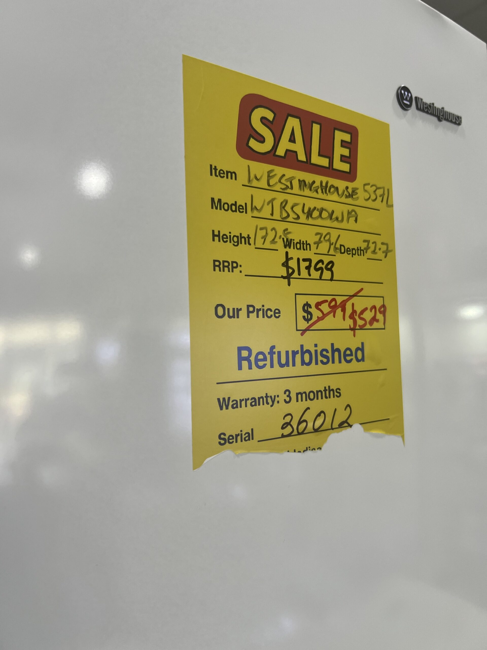 REFURBISHED Westinghouse 537 L top mount fridge FOR $529