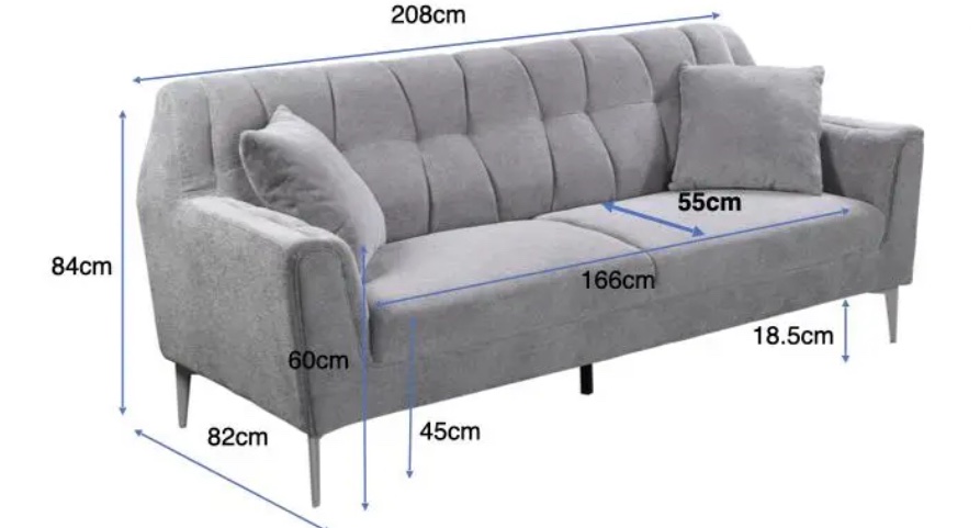 3 Seater: 2080mm (L) × 820mm (D) × 840mm (H)